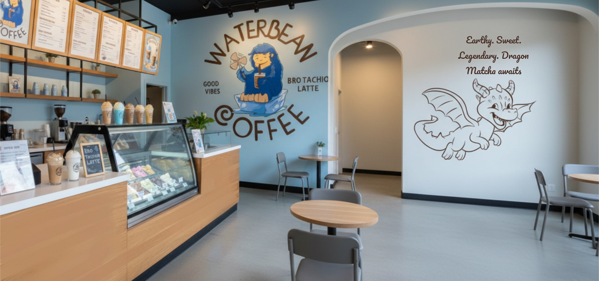 Even mythical creatures pause, cup in hand — because every sip tells a story.